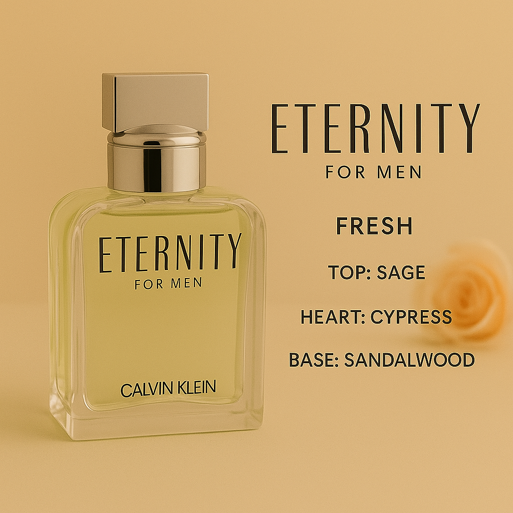 Calvin Klein Eternity for Men adalah parfum pria klasik dengan aroma fresh-aromatic. Kombinasi lavender, citrus segar, dan sandalwood lembut memberi kesan bersih, maskulin, dan elegan. Cocok untuk pemakaian sehari-hari dengan ketahanan 6–8 jam.