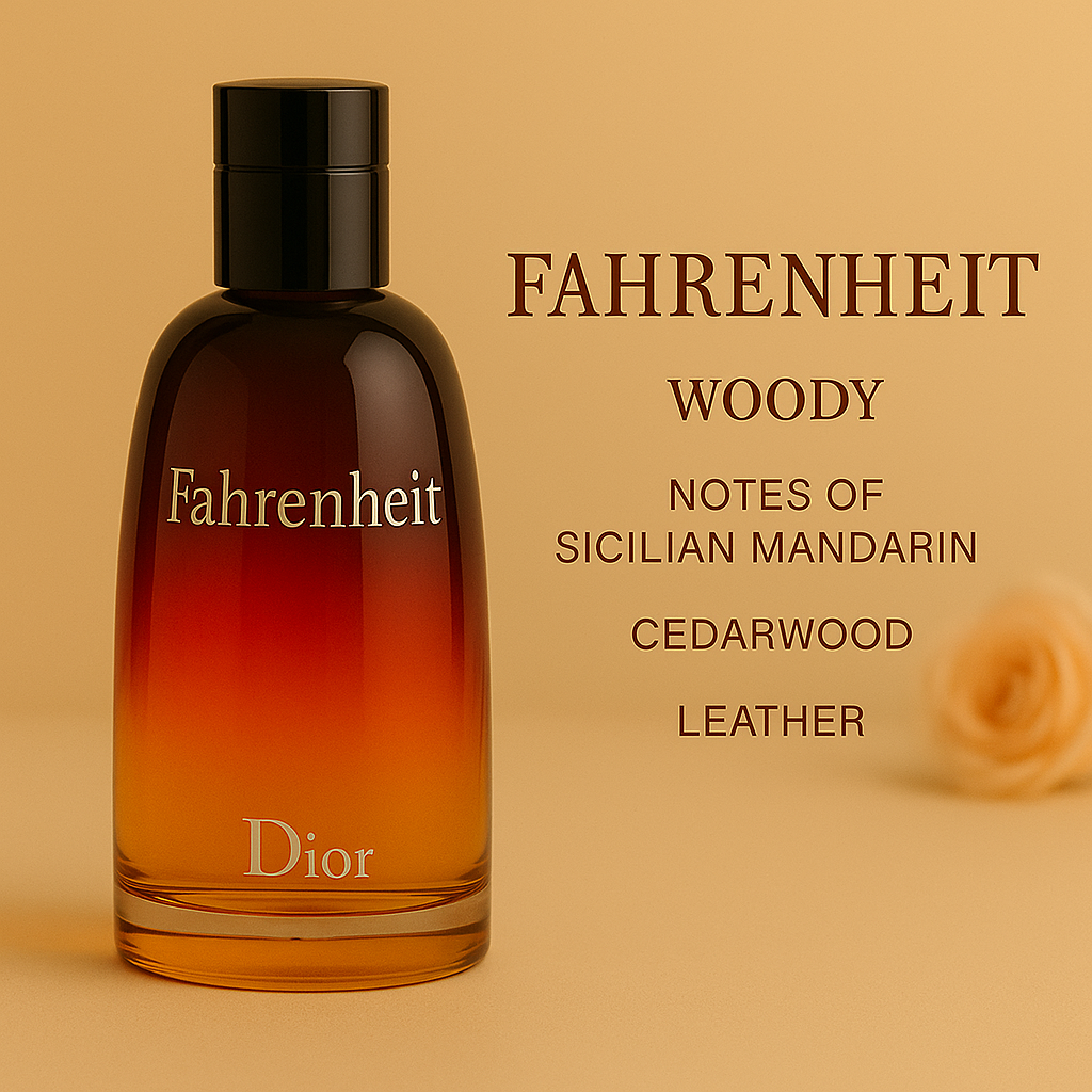 Dior Fahrenheit adalah parfum pria klasik dengan aroma leather-woody. Kombinasi daun violet, pala, dan kulit menciptakan kesan hangat, maskulin, dan elegan. Aromanya tahan lama 8–10 jam, cocok untuk pria berkarakter kuat.