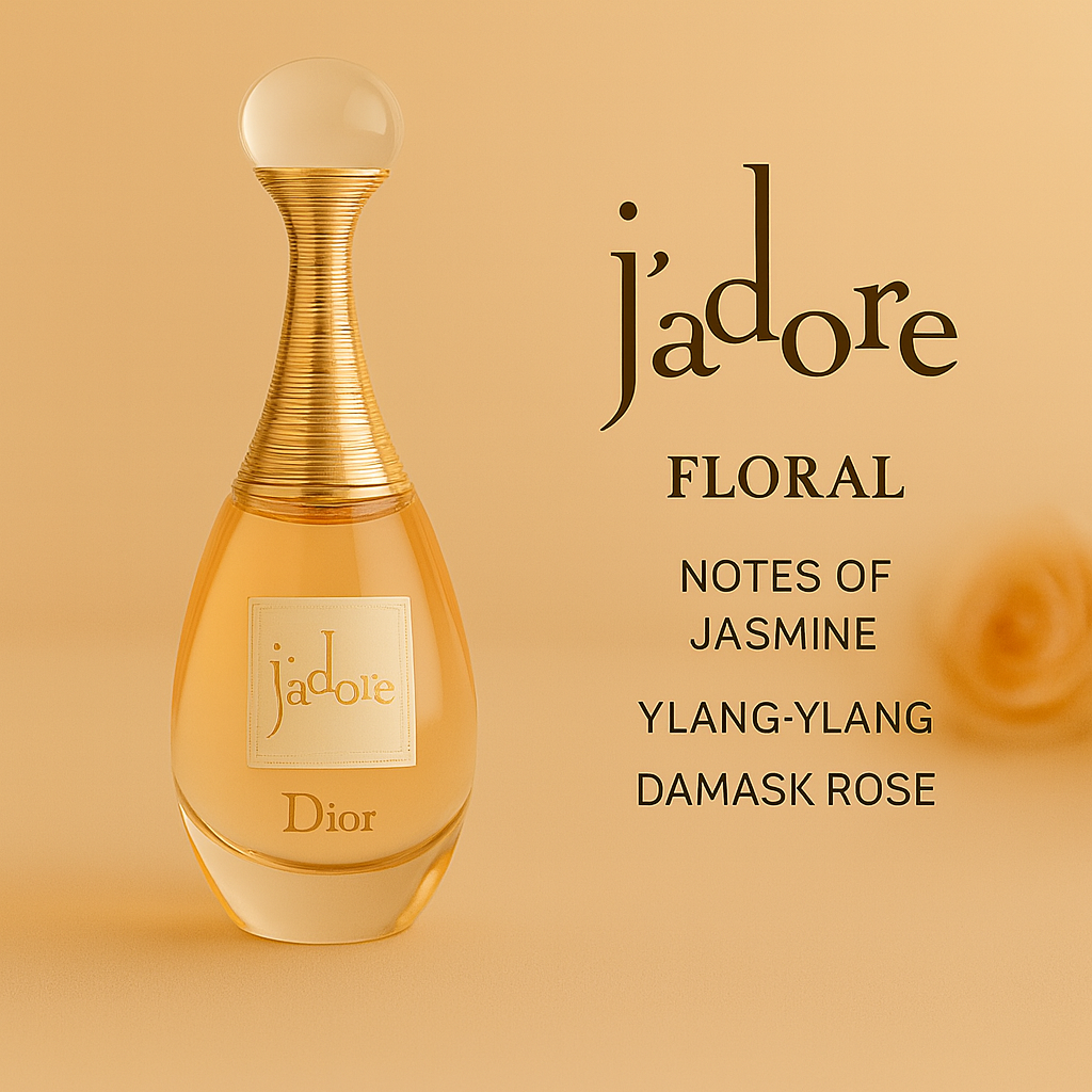 Dior J'adore adalah parfum wanita mewah dengan perpaduan bunga ylang-ylang, mawar Damaskus, dan jasmine yang feminin. Aroma floral elegannya memberikan kesan anggun dan romantis, cocok untuk siang maupun malam. Dengan daya tahan tinggi, parfum ini adalah simbol sudut wanita modern.