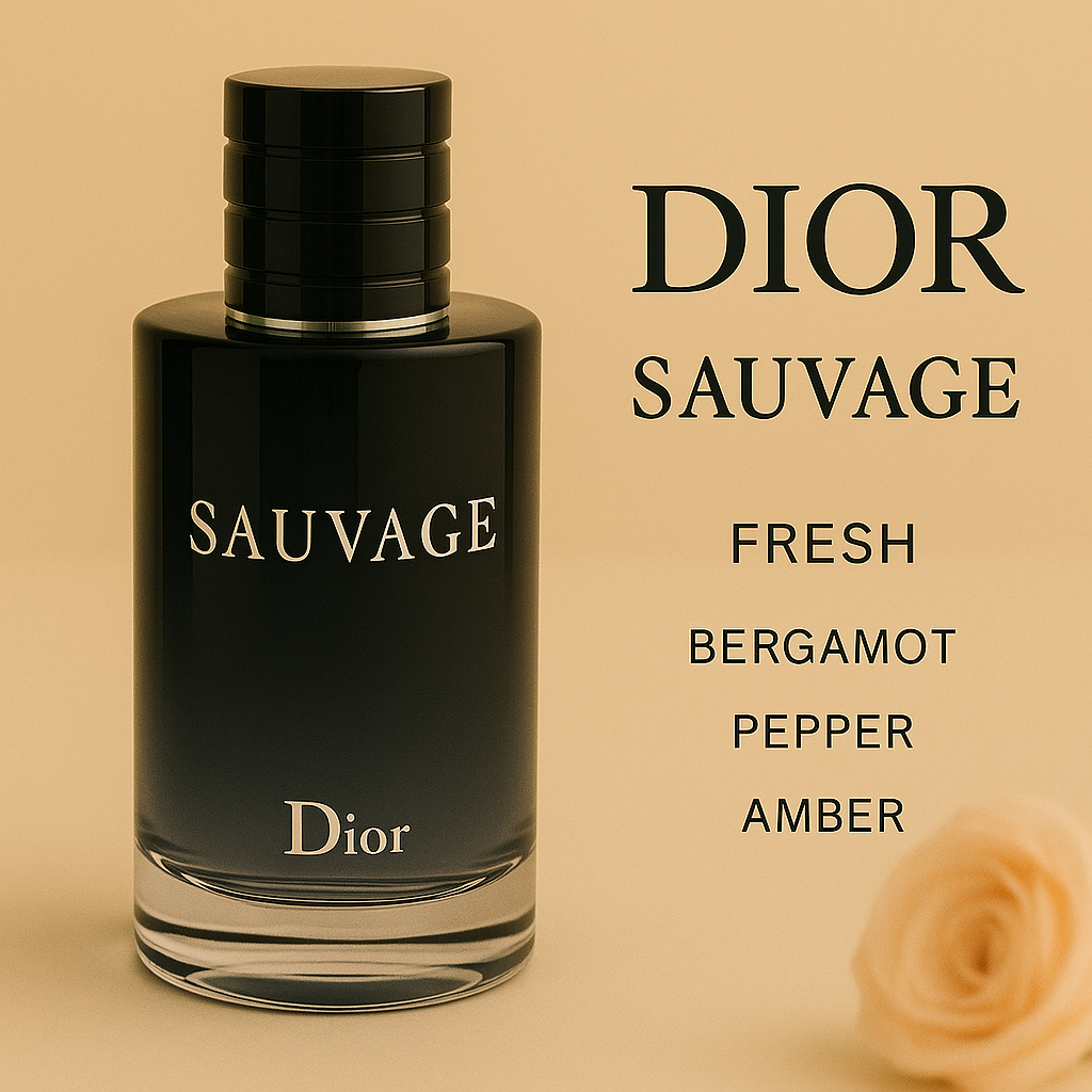 Dior Sauvage adalah parfum pria populer dengan kombinasi bergamot segar, pepper pedas, dan ambroxan yang maskulin. Memberikan kesan bersih, segar, dan percaya diri. Aromanya tahan lama hingga 8–10 jam, cocok untuk siang dan malam.