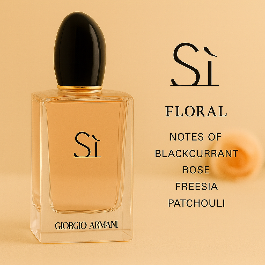 Giorgio Armani Si adalah parfum wanita elegan dengan perpaduan blackcurrant, mawar, dan vanilla. Aroma manis floral ini memberikan kesan percaya diri dan anggun, cocok untuk wanita modern. Konsentrat Eau de Parfum membuat aromanya bertahan sepanjang hari.