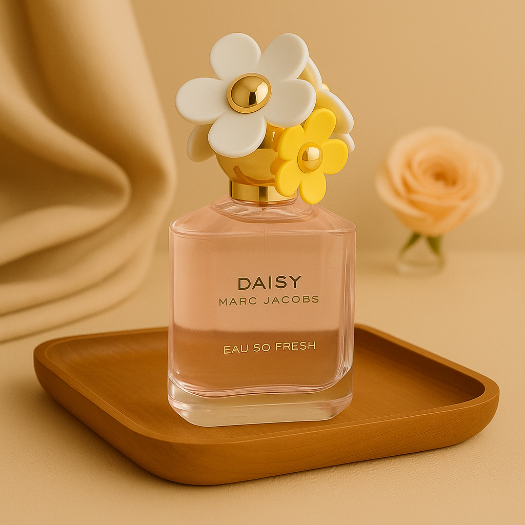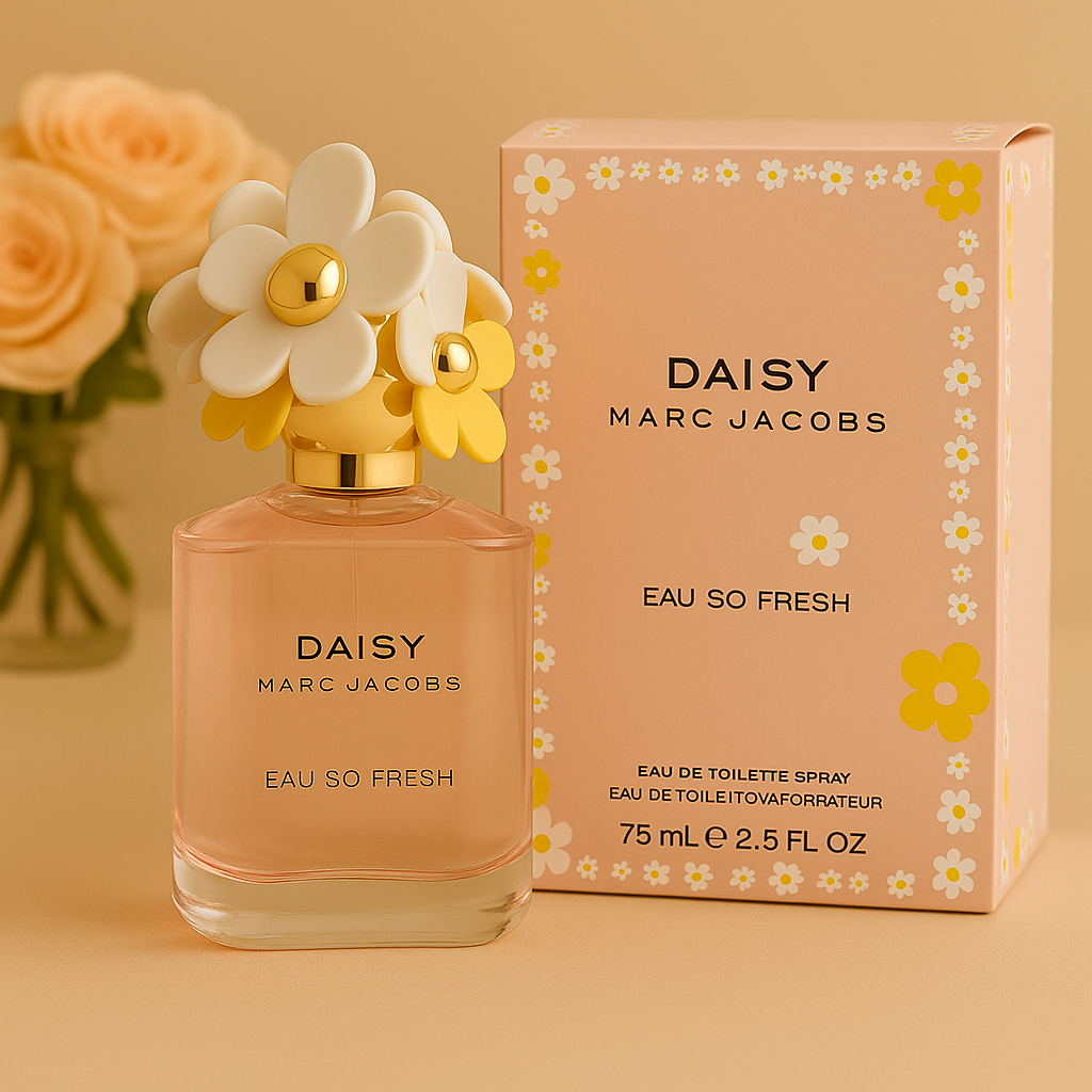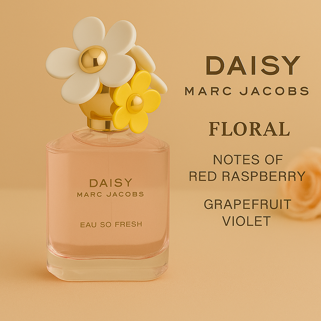 Marc Jacobs Daisy Eau So Fresh menghadirkan aroma Fruity-floral ceria dengan kombinasi raspberry, grapefruit, dan bunga violet. Parfum ini memberi kesan ringan, ceria, dan feminin, cocok untuk siang hari. Aromanya segar bertahan 6–8 jam, ideal untuk aktivitas santai.